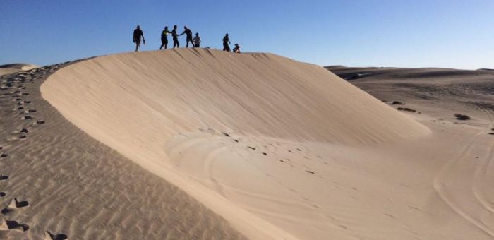 Wake up to the sounds of native birdlife, and after breakfast, embark on the Daveys Gully hike to take in panoramic views across the Spencer Gulf. Then, hit the road. Along the way, we'll see Kimba's unique silo art and wind towards the wildly beautiful Eyre Peninsula after a quick pitstop to buy lunch. Test your sandboarding skills in epic dunes before unearthing a magical seaside cave at Talia. Arrive at Coodlie Park Farm Retreat for a barbecue feast and spend the night in a unique swag hut. Today, travel approximately 450km. Accommodation Swag camping Coodlie Park Farm Retreat, which has shower and toilet facilities.