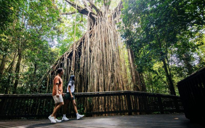 Take a dip in the cool water before we head to Lake Eacham, a crater lake with crystal-clear water, and visit the massive ‘Curtain Fig Tree’. We'll finish the day in Cairns, one of Australia's most vibrant, tropical and energetic cities.