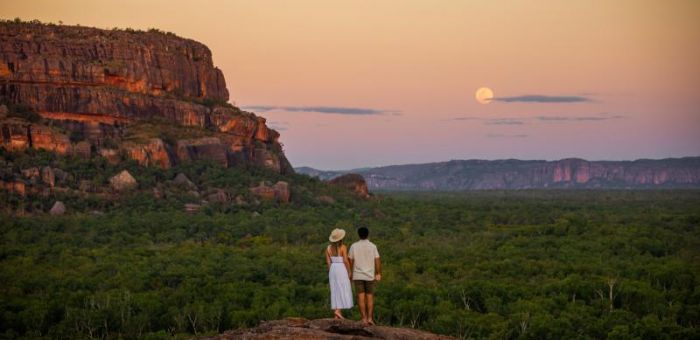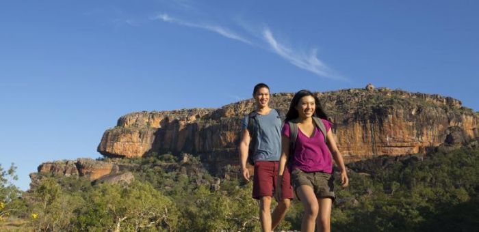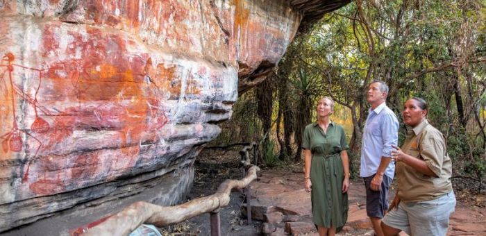 Time permitting, we stop at Burrungkuy (Nourlangie Rock), another indigenous rock art site where archaeologists have uncovered works dating back over 20,000 years old. We explore the evolving social, cultural and environmental changes to the area over time before making our way back to camp for a hearty dinner and a well-earned rest. Meals: Breakfast, Lunch, Dinner. Accom: Jabiru Campground - Permanent Safari Tents or Bush Swags (communal facilities). Driving Distance: 150km. Hike Distance and Grading: 1.5km - 4km.