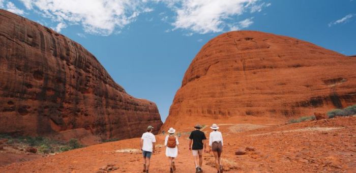 We head off early to explore the mighty Kings Canyon (Watarrka) venturing into the ancient landscape and sacred grounds of the Ulpanyali and Lilla people. Arriving at the jewel in the crown at the centre of Watarrka National Park (Kings Canyon) we find ourselves surrounded by towering 100-meter cliff faces, views of sandstone chasms, and jaw-dropping backdrops that will make the hairs stand up on the back of your neck. Grab your water, hat, and sturdy shoes as we set off on foot to explore (the most seasonally applicable part of) the canyon in more detail. On the way back to Alice Springs, your final destination, your bus will travel along the main highway to your final destination. On some occasions, we may use the Mereenie Loop Tourist Drive (access permitting) or the Ernest Giles Road depending on the vehicle used. Returning to Alice Springs around 5:30-6:00pm. Meals: Breakfast, Lunch. Driving Distance: 250km (2.5 hours). Hike Distance: 2-4 km / 2-4 hours. *Autopia Tours reserves the right to alter the route or itinerary schedule during seasonal weather fluctuations and/or during park closures due to traditional landowner ceremonies.