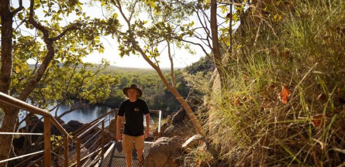 After a leisurely morning, we get ready to hit the road southwest toward our next amazing destination of Katherine and Nitmiluk. The road south winds its way through vistas showcasing the radiant earthy colours of the typical Northern Australian bush. Keep a lookout for wildlife including the Red Tailed Black Cockatoo, Agile Wallabies, wild horses and buffalo. Heading through the historical township of Pine Creek we stop to stretch our legs and enjoy an array of refreshments available to those who are keen, including homemade ice cream - extremely popular with Top End locals. Enjoy stories of the Overland Telegraph construction, leading to the Pine Creek gold rush era of the 1870s. We also have the option of visiting the Pine Creek Museum - a National Trust building and the oldest prefabricated corrugated iron building in Australia. After checking in to our Katherine accommodation, we head out to the wonderful Nitmiluk National Park and Katherine Gorge where we enjoy the 2-hour NitNit Dreaming Two Gorge Cruise, a leisurely snapshot into the history and stories behind this beautiful area. This cruise guides you down the middle of 70m sheer rock walls with wildlife hiding around every corner. An area rich in creation stories, you will marvel at your surroundings and the relaxed atmosphere of the cruise. After your cruise, we head back to Katherine where we can settle in and relax in our comfortable accommodation, enjoying local hospitality in readiness for our fourth and final day of exploring the region. Meals: Breakfast, Lunch, Dinner. Accom: Katherine either Knotts Crossing Resort or Contour Hotel, options include twin, double, single rooms with ensuite bathrooms. Driving Distance: 310km. Hike Distance and Grading: none.