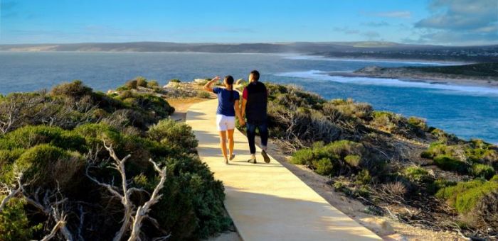 Start early to catch a glimpse of the Murchison Gorge, Nature's Window, and the Kalbarri Skywalk in Kalbarri National Park, where water has carved its way through sandstone. Witness bright pops of colour here during the wildflower season (spring). Visit the well-known Billabong Roadhouse for lunch and refreshments (at guests' expense), an iconic landmark that has been serving visitors to Western Australia since 1962. From here, we visit the remarkable Shell Beach, and take a stroll along a beach made entirely of tiny shells. At Monkey Mia Dolphin Resort, we will stay right on the beach with resident dolphins living close by, within the World Heritage Listed area known as Shark Bay. You can hire a Kayak and go for a paddle (optional extra), relax on the beach or at the resort, or look for turtles, dugongs, emus, and kangaroos that live here. Meals: Breakfast. Accom: RAC Monkey Mia Dolphin Resort Private Standard Rooms (with ensuite) or Twin Share (with shared facilities) or similar alternative. Options: Didgeridoo Dreaming Night Tour (pre-booking required). Driving Distance: 450km. Hike Distance: 3km.