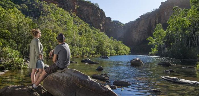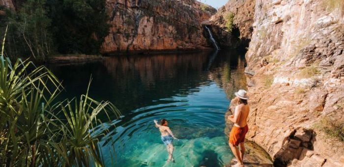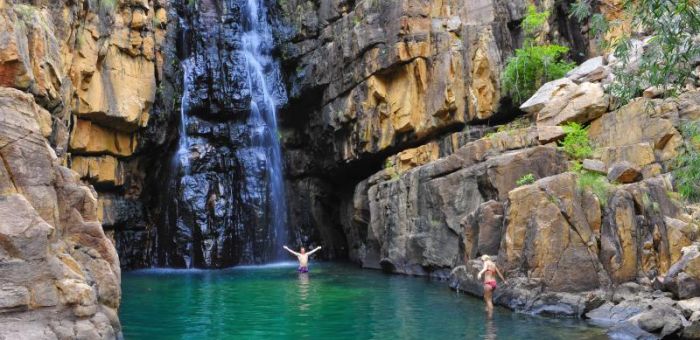 Today we’ll spend the day soaking up the spectacular natural beauty of the area, hiking through lush monsoon rainforests, and swimming in pristine plunge pools and waterfalls surrounded by steep escarpments and rocky cliffs.