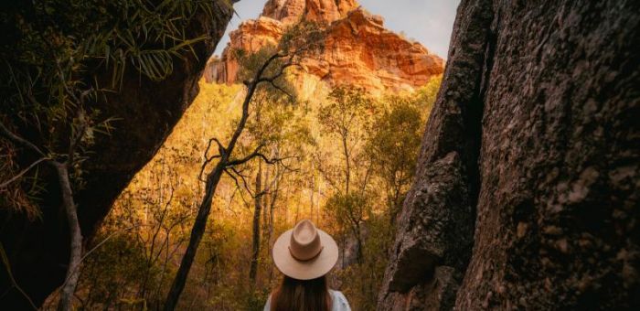 It’s an early start today to reach Nitmiluk National Park and board your 2 hour NitNit Katherine Gorge boat cruise - an absolute must-do in the Top End. This cruise guides you down the middle of 70m sheer rock walls with wildlife hiding around every corner. An area rich in creation stories you will marvel at your surroundings and the relaxed atmosphere of the cruise. If you are also interested in doing a scenic helicopter flight after the cruise there are a range of options available to take in the spectacular views of Nitmiluk and Katherine Gorge. It’s now time to continue our journey, making our way to the beautiful Edith Falls for further relaxation in picture-perfect Top End surroundings with a picnic lunch, a huge plunge pool beneath a cascading waterfall, and a welcome chance to cool off!