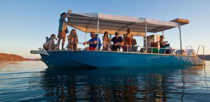 Not long after breakfast we stop in for an optional cruise at Lake Argyle. This vast body of water has been forged by the Ord River Dam. The biggest man-made lake in Australia, Lake Argyle is 18 times the size of Sydney Harbour! After this Stop say goodbye to WA as from here we cross the state border into the Northern Territory. The day is spent enjoying the last views of the Boabs you have fallen in love with as we make our way towards Katherine and it’s relaxing hot springs, before our last camp for the night just outside of Nitmiluk National Park in the Katherine Region.