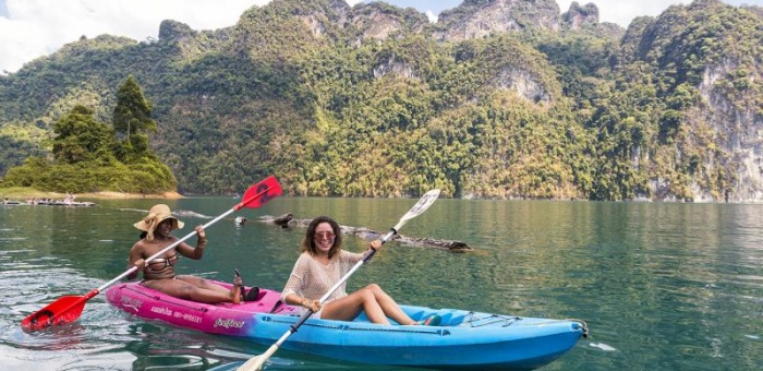Arrive in Khao Sok National Park. Go tubing, kayaking and sleep overnight in floating bungalows!
