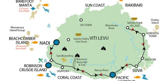 0900hrs: Robinson Crusoe Island to the stunning Coral Coast. Stop in Sigatoka town for a market visit then to Bedarra Inn to pick packed lunch before proceeding to the Waterfalls. Enjoy Rainforest Trek and the largest waterfall in Coral Coast. Finish your day in Nadi at your booked accommodation.