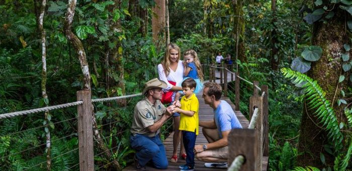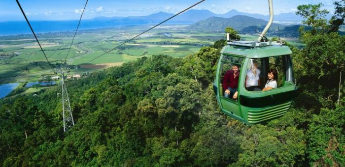 Grand Kuranda Tour includes Kuranda Scenic Railway, Army Duck Rainforest Tour on land and in water, World-Famous BBQ Buffet Lunch, Pamagirri Aboriginal Experience, Koala and Wildlife Park, Skyrail Rainforest Cableway and Australian Butterfly Sanctuary.