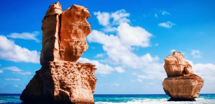 The original archway collapsed in 2009 however two striking stacks remain, standing nearly as tall as the Apostles.
