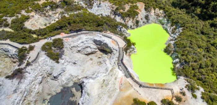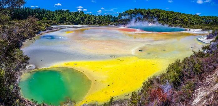 5. Wai-O-Tapu Geothermal Wonderland – Arriving at our second feature destination you will experience a fully guided tour of Wai-O-Tapu Geothermal Wonderland. Considered one of the most surreal places on earth, here you will see the famous Champagne Lake, Devil's Bath, local mud-pools, geothermal craters and other geothermal wonders. The colours and activity will take your breath away.