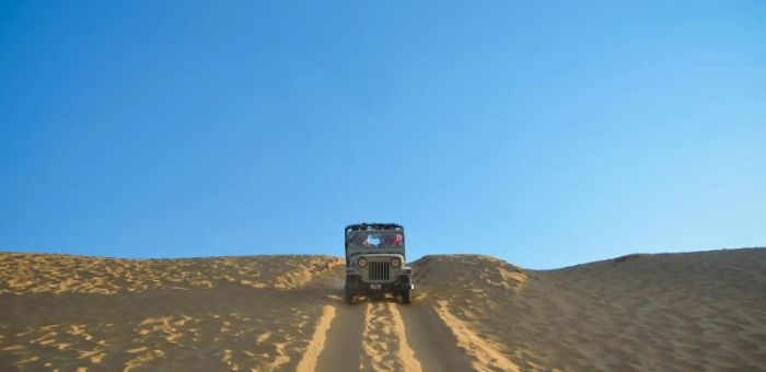 It's time to bid farewell to the urban hustle and bustle as we travel into the heart of the Thar Desert. We’ll hop into jeeps for a sunset safari among the rippling sand dunes. As night falls, we’ll return to camp to immerse ourselves in authentic Rajasthani warmth and hospitality. Sharing stories over dinner, we'll marvel at the starlit sky and retire to sleep in traditional Swiss tents.