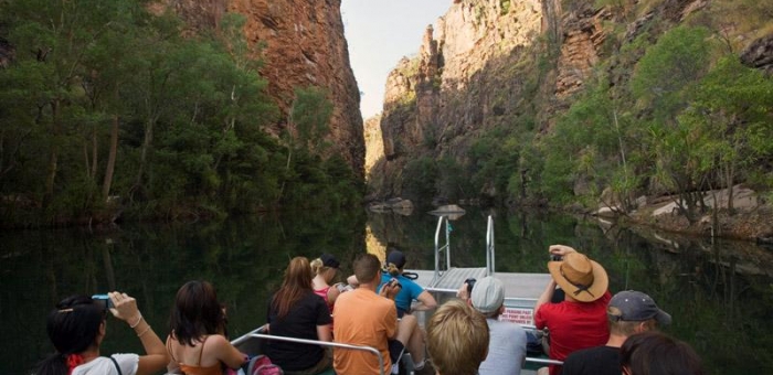 Spend the day exploring the deep Nitmiluk (Katherine) Gorge and greater Nitmiluk National Park, a wonderland of colours, ancient rock art, waterfalls and wildlife. While here, you can explore the region on foot, or choose to take a cruise (optional) to get a different perspective of the Gorge. Keep in mind that these optional activities are seasonal and at your own expense. In the afternoon, travel to Edith Falls, a hidden oasis of clear, cool waters surrounded by bronze boulders. After a quick swim in the huge rock pools, continue to tonight’s camp located at the edge of Litchfield National Park, where dinner awaits.