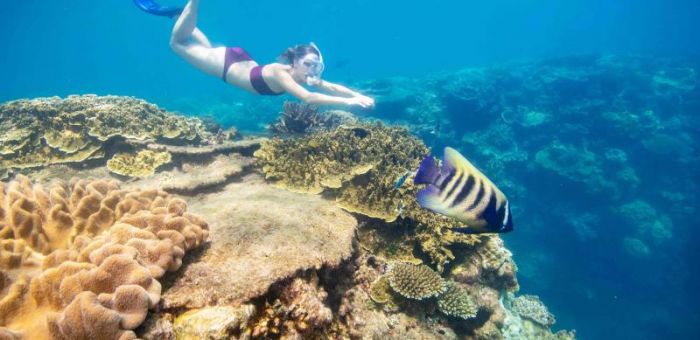 Your tour includes a relaxing air-conditioned catamaran transfer to our pontoon on the Outer Great Barrier Reef. Moore Reef is a healthy and vibrant reef site renowned for its incredible corals and abundant marine life. During the journey, there will be presentations by marine experts and there is the opportunity for passengers to book optional activities such as introductory and certified scuba diving, Seawalker helmet diving, guided snorkel safari tours and scenic helicopter flights.