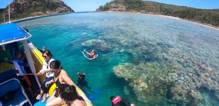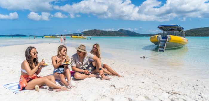 The semi rigid inflatable vessels are super fast allowing guests to experience a fun ride, adventure and education amongst the natural beauty of the Whitsundays. 32 passengers at most allows for personal snorkelling lessons and the pleasure of a small group. A buffet style lunch is served (for those purchasing the "included lunch" package or you can brig your own) at the beach with plenty of time to swim in the turquoise ocean or just relax on the silica white sand.