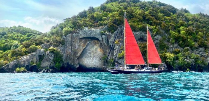 Get your cameras out as we head to Taupo, a lakefront town right in the heart of the North. Tonight we’ve got something special lined up - a sail across the lake. The majestic scenery and the maori rock carvings will wow us.
