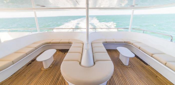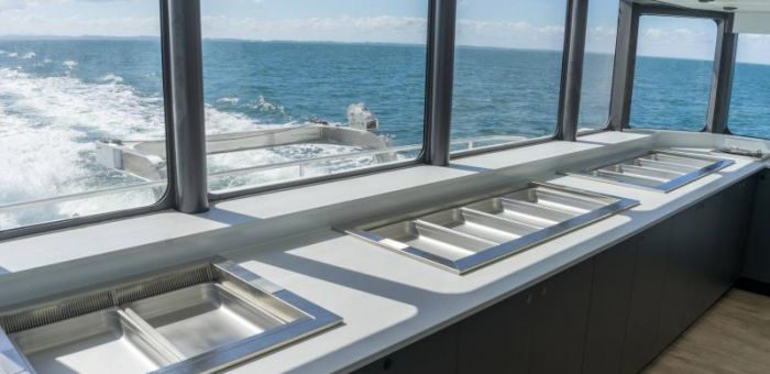 Passengers can relax and enjoy the comfortable booth seating, ambient décor and no matter where they are they won’t miss a thing with high definition cameras projecting live outdoor footage onto TV screens throughout the vessel.