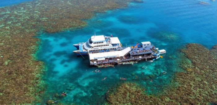 Check-in & collection of boarding passes must be completed 07:00 – 07:30 at the Sunlover Cruises desk inside the Reef Terminal at Cairns Marina (located corner of Spence St & Pier Point Road). Passengers failing to check-in by 07:30 may miss final boarding.