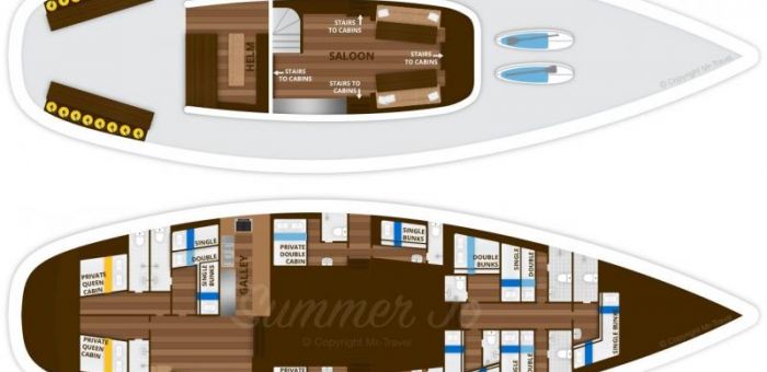 Fresh from a remarkable $1 million makeover, Summer Jo combines the iconic Whitsunday hotspots, including Whitehaven Beach and diving on the Great Barrier Reef. This spacious mega yacht comfortably accommodates 32 passengers in various cabin types, including private, air-conditioned cabins with ensuite facilities.