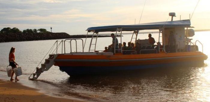 Leaving Stokes Hill wharf at 1745 hours a fast boat ride will take you past the sights and sounds of Darwin city seascape to arrive at either Cullen Bay Beach or Fishermans Wharf where you will pick up your fish’n chips. Eat your dinner accompanied by a glass of sparkling, the warm wind, an exquisite tropical sunset and a harbour full of intrigue, as you casually cruise around to find the best position for your Darwin Harbour sunset photo. A perfect end to the day for families and spirited travellers, and those that have an interest in a real Top End experience. A fast boat ride in the calm of the evening will get you back to the hub bub of Stokes Hill Wharf.