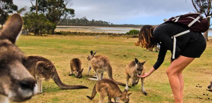 In Launceston you’ll explore the Cataract Gorge located along the South Esk River. Only minutes from the city centre, this fantastic nature reserve is a great place for seeing wallaby. Travel to the East Coast via St Columba Falls and enjoy lunch at the fishing town of St Helens. At the Bay of Fires/larapuna, learn about the spiritual connection of the land to Tasmanian aboriginal people/palawa. Walk along the Bay’s pristine white sands with its turquoise waters with striking orange boulders. We will spend the night in the beachside town of Bicheno, home of the little penguin. Overnight: Bicheno