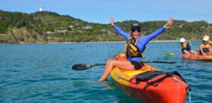 This guided tour is the perfect Byron Bay experience. Join our passionate team of surf lifesavers for an unforgettable kayak to Australia’s most easterly point. The Byron Bay Marine Park is home to bottlenose dolphins, humpback whales and three species of sea turtle, so keep your eyes peeled for them as you glide along the clear blue ocean. Our knowledgeable guides will share stories of local history, aboriginal culture and marine biology, making this tour the perfect combination of education and adventure. Oh, and prepare to save the best for last as your guide teaches you to surf your kayak back to shore!