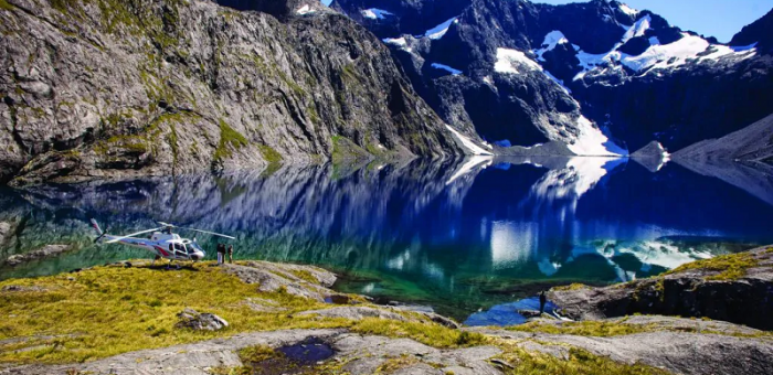 Weaving in three of Fiordland’s best wilderness destinations – Dusky Sound, Doubtful Sound, and iconic Milford Sound – this is our premier Heli-flight experience and includes 3 landings. Tamatea/Dusky Sound is one of our most remote and longest fiords. Dotted with 350 small islands, it’s only accessible by air or by boat – there is no road or walking trail – making it a very special place to explore by helicopter. Patea/Doubtful Sound has an incredible serenity, with Patea meaning “the place of silence” in te reo Māori. You’ll fly over Crooked Arm along with several of the fiord’s most impressive waterfalls. Seeing Campbell’s Kingdom from the air is a real highlight – this hanging valley is the stuff of storybooks and movie scenes! Piopiotahi/Milford Sound is iconic and was once referred to as the eighth wonder of the natural world. From the air, it’s easy to see why. Rainforests cling to soaring granite cliffs that leap out of inky water. The Pembroke Glacier, the Sutherland Falls, and Mitre Peak look all the more beautiful from above.