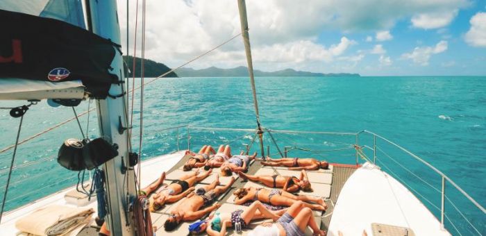 Tongarra Day Sail offers a large comfortable catamaran with a huge deck, spacious seating, chilled tunes and spectacular scenery. We will provide history talks, and guests will learn from our experienced crew about the reefs and the beautiful islands. Snorkel at pristine locations in secluded anchorages and bays and come face to face with tropical fish, colourful corals and more.