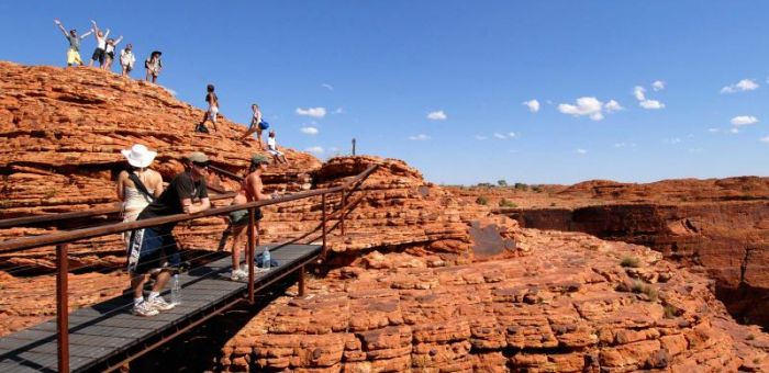 After breakfast, get your hiking shoes on and head out to explore the impressive formations of Kings Canyon. You’ll be left breathless by the sheer beauty of the canyon, as you trek through the Amphitheatre, the Lost City, the lush and ancient Garden of Eden and the North and South Walls. Lunch is a welcome prospect, before you make your way back to Alice Springs. On arrival, you're free to leave and carry on your travels but please ensure departing flights are booked for the following day. Note: Total driving time takes around five hours. Total walking time is approximately three hours.
