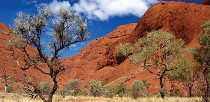 Melbourne might have the arts scene and Sydney the beaches, but Alice Springs is really where you need to go to understand Australia proper. Approximately 70% of the Australian continent is classed as arid or semi-arid – and little old Alice Springs sits right in the middle of it all. Whereas Uluru emerges from the earth as one giant boulder form, Kata Tjuta pops up as 36 different domes – you’ll get to know the site pretty well on an afternoon hike following lunch. As evening begins, enjoy some tasty snacks as the sun sets over Uluru casting incredible colours. The perfect end to a remarkable day is awaiting you back at camp, as you enjoy a delicious spread of food with your group. If the weather permits, sit outside under the stars. Today, driving time is approximately 4.5 hours. Walking is approximately one hour.